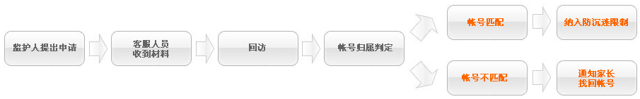 您提交相關申請資料后,我司客服人員將按照監護申請流程盡快處理您的申請,處理過程中可能需要對監護人和被監護人進行電話回訪以便信息的判定,希望您的配合。Q6:判定帳號歸屬需要多久呢?